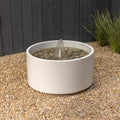 The CYLINDRA water feature expresses verticality and clarity through a cylindrical form that contains and amplifies water movement. Its defined geometry creates a focused spatial anchor with controlled surface behavior.