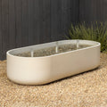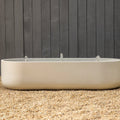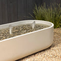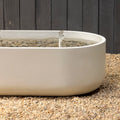 The ARCUS water feature extends the fire feature's signature geometry into a biophilic architectural element. Its curved profile frames water behavior within a defined spatial gesture, creating balance between mass and movement.