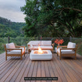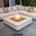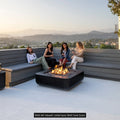 A modern evolution of the traditional orthogonal fire table, RAIO combines clean lines with a softly rounded form, offering a refined and contemporary design. The extended top surface at the corners provides ample space for beverages or small platters, making it the perfect addition alongside sectional sofas and corner benches.