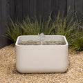 The RAIO water feature extends Lumacast’s radial design language into a dynamic architectural form. Its geometry emphasizes movement across the surface plane, reinforcing the relationship between flow and structure.